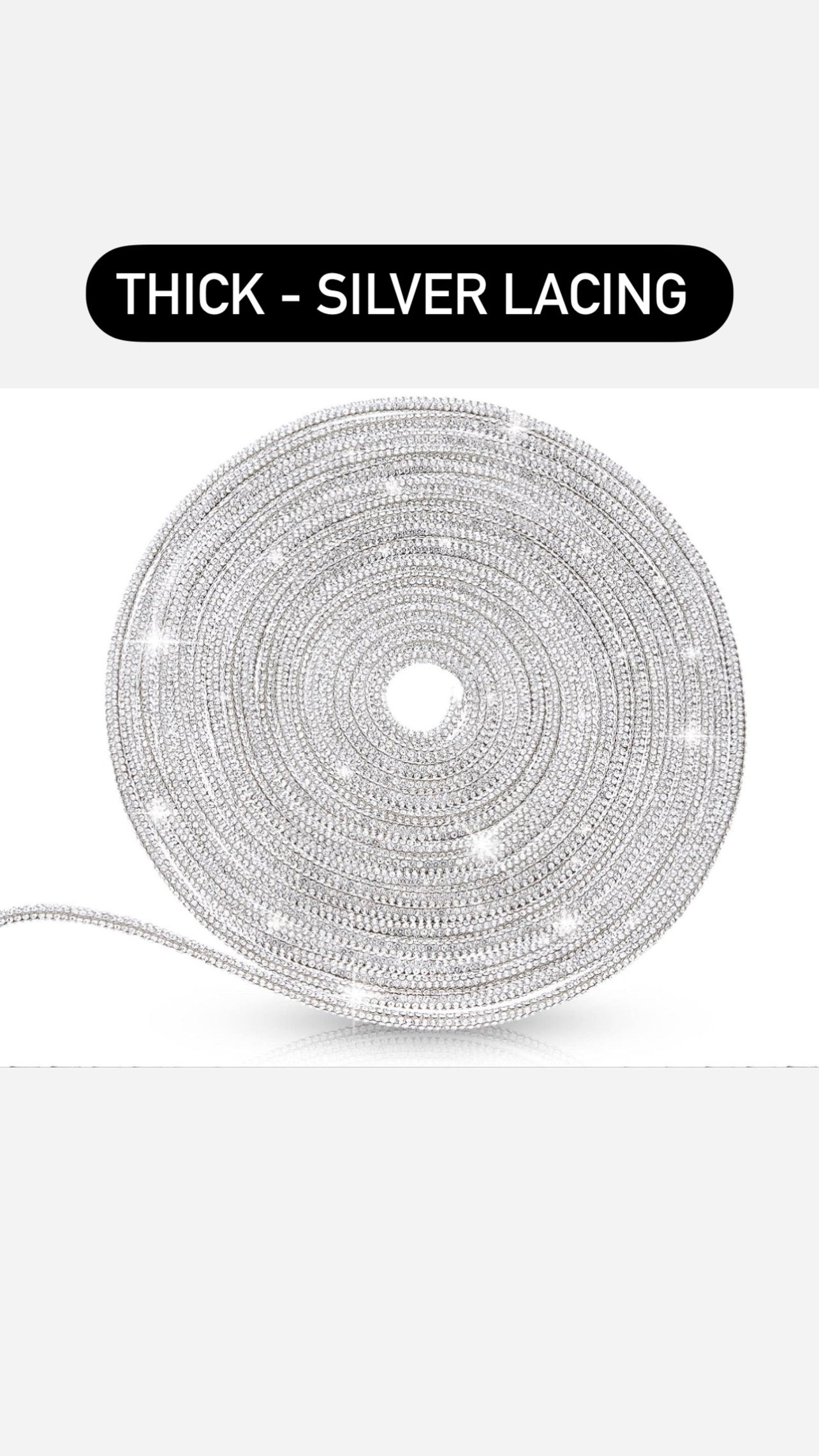 ***Thick Silver Rhinestone lacing: 55 inches long**